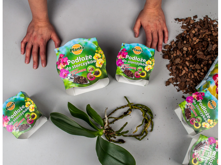 Wśród asortymentu firmy Planta pojawił się nowy produkt – Podłoże do storczyków. Zestaw z doniczką. Zestaw składa się z plastikowej, przeźroczystej doniczki ze specjalnie ukształtowanym dnem oraz podłoża do storczyków. W skład podłoża wchodzi selekcjonowana kora sosnowa cechująca się dużą powierzchnią i stabilną strukturą, obojętny chemicznie keramzyt, charakteryzujący się dużą przewiewnością oraz torf wysoki dobrze magazynujący wodę . Składniki te zapewniają zwiększoną pojemność powietrzną i porowatą strukturę przy jednoczesnym utrzymaniu odpowiedniej wilgotności podłoża. Doniczki dostępne są w dwóch rozmiarach 147mm i 114mm średnicy. Ilość podłoża w doniczce wystarcza na przesadzenie jednej rośliny. Więcej informacji dotyczących przesadzania storczyków znajdziecie Państwo https://www.planta.pl/pl/porady/pielegnacja-roslin/jak-przesadzic-storczyka