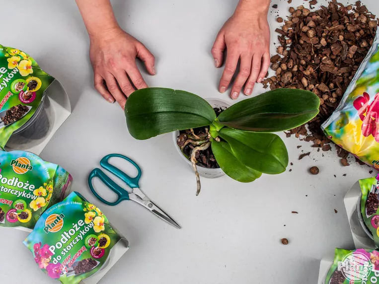 Do przesadzania storczyków używamy specjalnego podłoża o przewiewnej strukturze. Najlepsze jest podłoże, w skład którego wchodzi kilka optymalnie dobranych składników. Jednym z nich może być selekcjonowana kora sosnowa cechująca się dużą powierzchnią i stabilną strukturą, obojętny chemicznie keramzyt, charakteryzujący się dużą przewiewnością i porowatością oraz torf wysoki, dobrze magazynujący wodę. Składniki te zapewniają zwiększoną pojemność powietrzną i porowatą strukturę podłoża przy jednoczesnym utrzymaniu odpowiedniej jego wilgotności. Możemy je znaleźć w specjalnie skomponowanym Podłożu do storczyków firmy Planta. Ostatnio na rynku pojawiło się Podłoże do storczyków w komplecie z doniczką. Jest to świetne rozwiązanie usprawniające proces przesadzania.