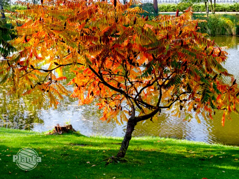 Sumak to soliter. Pięknie będzie prezentował się na otwartej przestrzeni, w słonecznym miejscu. W jego pobliżu nie powinno być żadnych rabat, ani kwitowych ani warzywnych, aby nie prowadzić wokół niego prac pielęgnacyjnych. Nawet na rozległej działce proponuje się bariery korzeniowe choć może to jeszcze bardziej przyczynić się do obniżenia stabilności rośliny i zwiększenia ryzyka przewrócenia się drzewa. Obecnie na rynku można spotkać kilka odmian tej rośliny, o odmiennych liściach i z mniejszą tendencją do tworzenia odrostów.