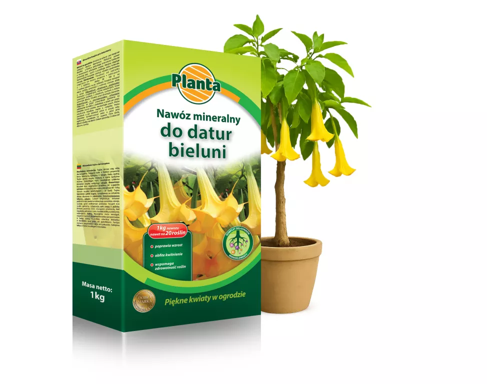 Nawóz mineralny przeznaczony do nawożenia wszystkich rodzajów datur - bieluni. Odpowiednia proporcja potasu i fosforu powoduje intensywne kwitnienie oraz równomierne wybarwienie kwiatów. Nawóz zapewnia optymalne warunki rozwoju. Nawóz zgodny z normami europejskimi.