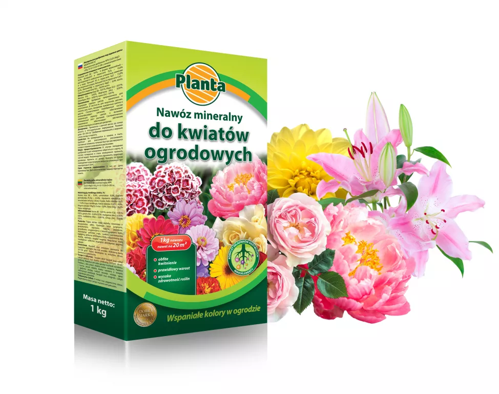 Nawóz przeznaczony jest do nawożenia kwiatów ogrodowych jednorocznych i wieloletnich. W szczególności do dalii, cynii, piwonii, róż, kann, goździków, kwiatów cebulowych i innych. Intensyfikuje kwitnienie, zapewnia właściwe wybarwienie kwiatów oraz powoduje optymalny wzrost.Nawóz zgodny z normami europejskimi.